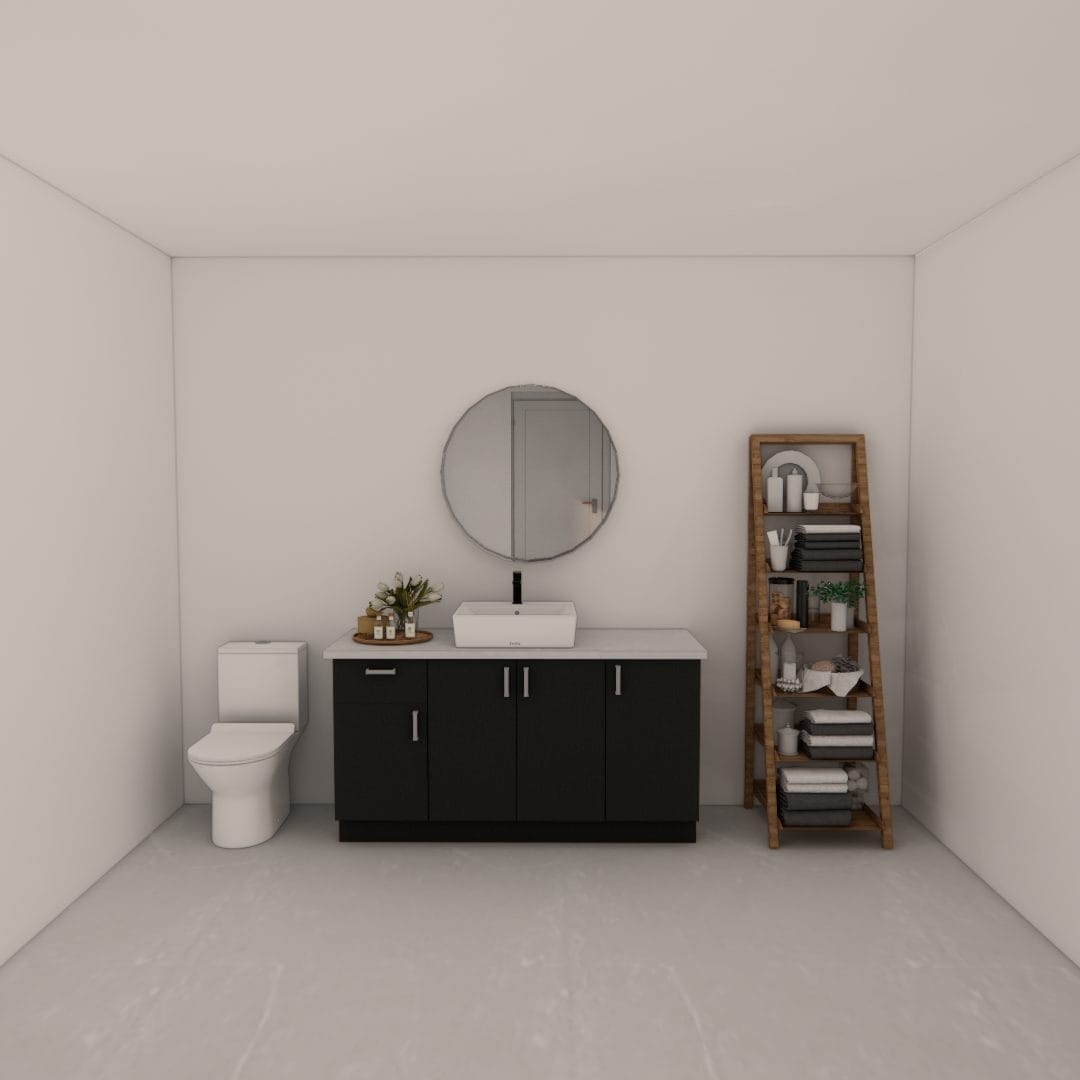 Cette vanité 1 porte (1P) et 1 tiroir (1T) en mélamine couleur charcoal 123 est disponible en plusieurs largeurs