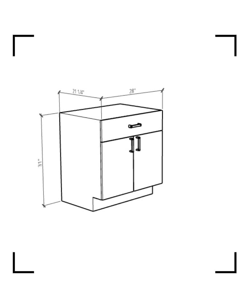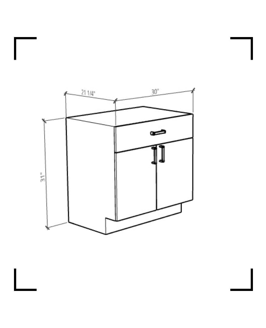 Cette vanité en mélamine couleur K30 à 2 portes (2P) et 1 tiroir (1T) est disponible en plusieurs largeurs