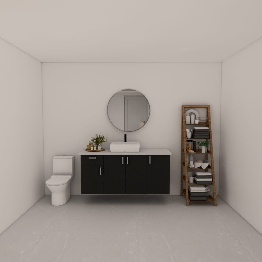 Cette vanité suspendue en mélamine couleur charcoal 123 à 1 portes (1P) et 1 tiroir (1T) est disponible en plusieurs largeurs