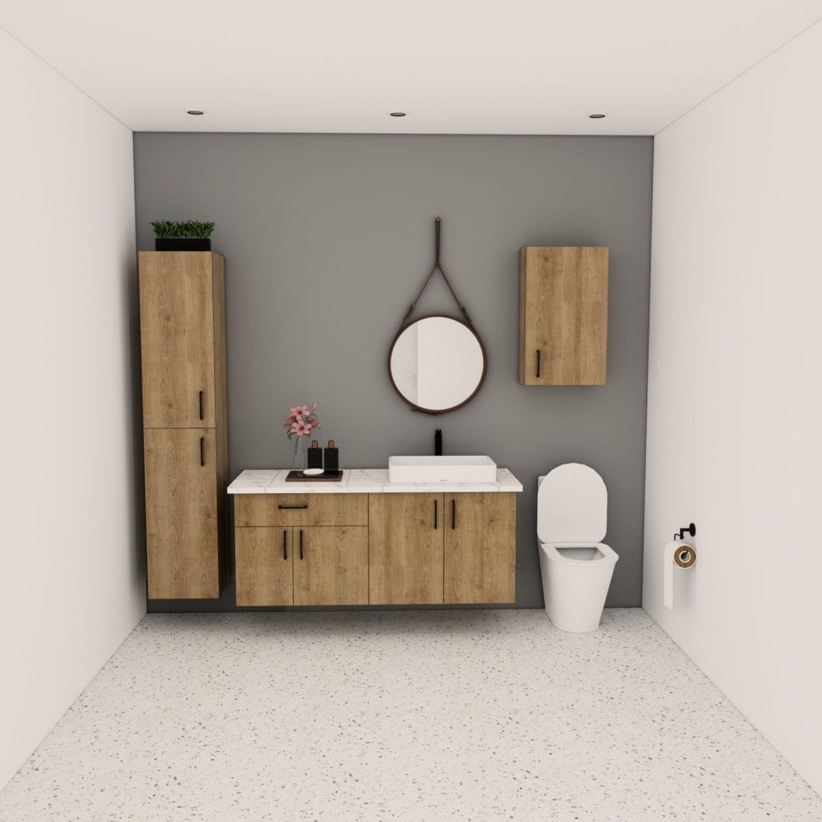 Cette vanité en mélamine couleur K32 à 2 portes (2P) et 1 tiroir (1T) est disponible en plusieurs largeurs