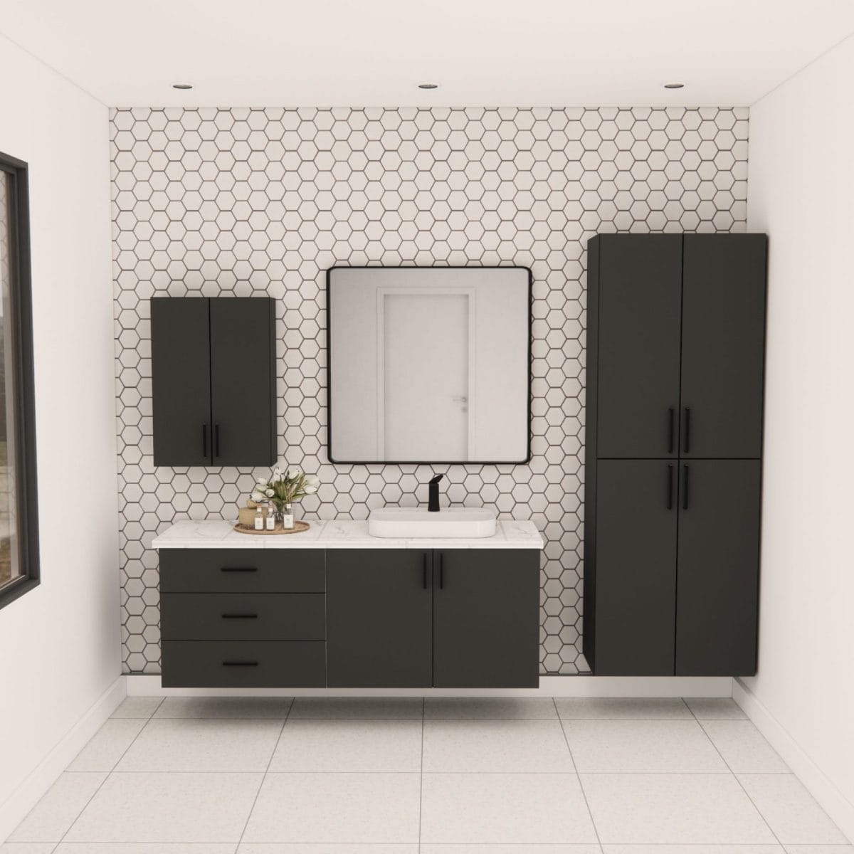 Cette vanité 3 tiroirs en mélamine couleur charcoal 123 est disponible en plusieurs largeurs